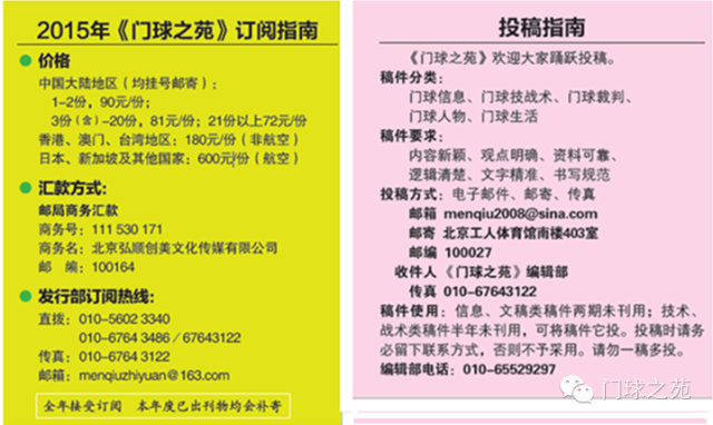 7、《门球之苑》发行部从2015年7月15日起接收报名,请将报名表传真至:010-67643122;