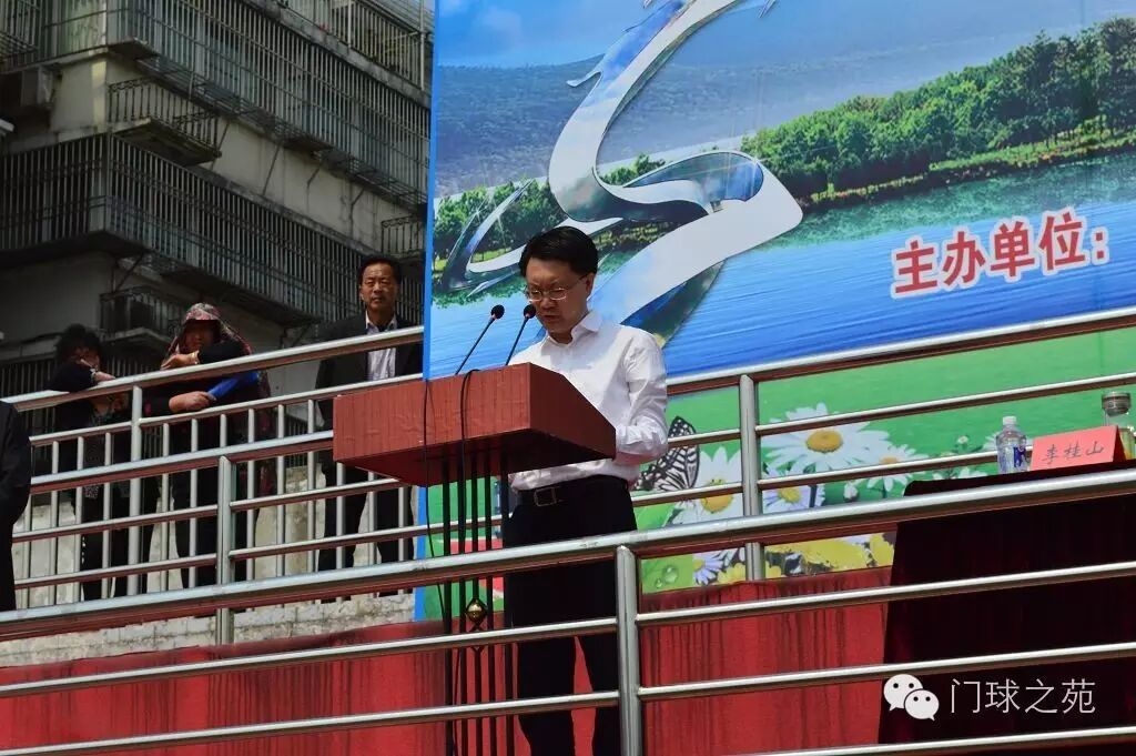 首先登场的是江都体育舞蹈协会组织的80人健身腰鼓表演;然后是机关幼儿园小朋友们展示的百人幼儿操表演;江都市总工会、体育舞蹈协会共同组织的300人的排舞表演——《舞动中国》,让全场沸腾;最后一项代表民族体育特色的舞龙表演,由江都乡镇农民组成的80人队伍表演。这几项全民体育项目的精彩演出,充分展现了全民健身运动在江都广大人民群众中深厚的基础,也为本次比赛烘托了热烈精彩的氛围。 开幕式由扬州市江都区人民政府副区长李桂山主持,主席台就坐的领导和嘉宾有:中国门球协会主席翁家忍 ;国家体育总局社会体育指导中心副主任刘北剑;中国门球协会副主席、江苏省门球运动协会会长吕卫东 ;中国门球协会秘书长张娜;江苏省体育局群体处处长、省门协常务副会长熊伟;江苏省社会体育管理中心副主任张晃新;北京市门球运动协会副会长邹慧心;江苏省门球运动协会副会长王强;中共扬州市委副秘书长、市体育局局长佘俊臣;中共扬州市江都区委书记蒋爱祥;扬州市江都区人民政府区长韦峰 ;扬州市体育局副巡视员张峰;江苏江都农村商业银行董事长周加琪 。 (扬州市江都区人民政府副区长李桂山) 首先由扬州市江都区人民政府区长韦峰致欢迎辞;国家体育总局社会体育指导中心副主任刘北剑为大会致辞。刘北剑副主任首先代表主办单位对参赛队表示欢迎,对承办方及工作人员裁判员表示感谢和问候,并说到:“全国锦标赛是中国门球协会举办的水平最高的年度常规赛事。今年举办的全国锦标赛,因被赋予了亚洲锦标赛选拔赛的使命而将更加精彩,我们希望通过这一高水平比赛,遴选出国内最优秀的队伍代表中国于十月出征韩国参加第七届亚洲锦标赛,并取得优异成绩!希望全体运动员在比赛中赛出水平、赛出风格,希望全体裁判员营造公正公平的竞赛环境,服务参赛运动队。衷心感谢江苏省社会体育管理中心、江苏省门球协会、江都区人民政府、体育局、门球协会的大力支持,感谢中国体育报、华奥星空、《门球之苑》等新闻媒体的关注,祝比赛圆满成功!”