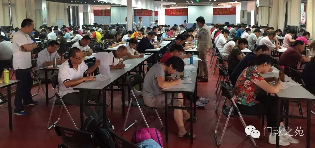 9号进行闭卷考试和讲评。10—12号将现场进行实践考核。最终将根据两者综合成绩,有一批优秀学员将被批准为国家一级门球裁判员。 晋升国家一级门球裁判员考核现场。 (南京盖特宝公司提供支持)
