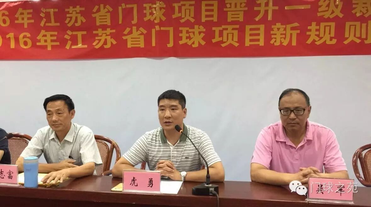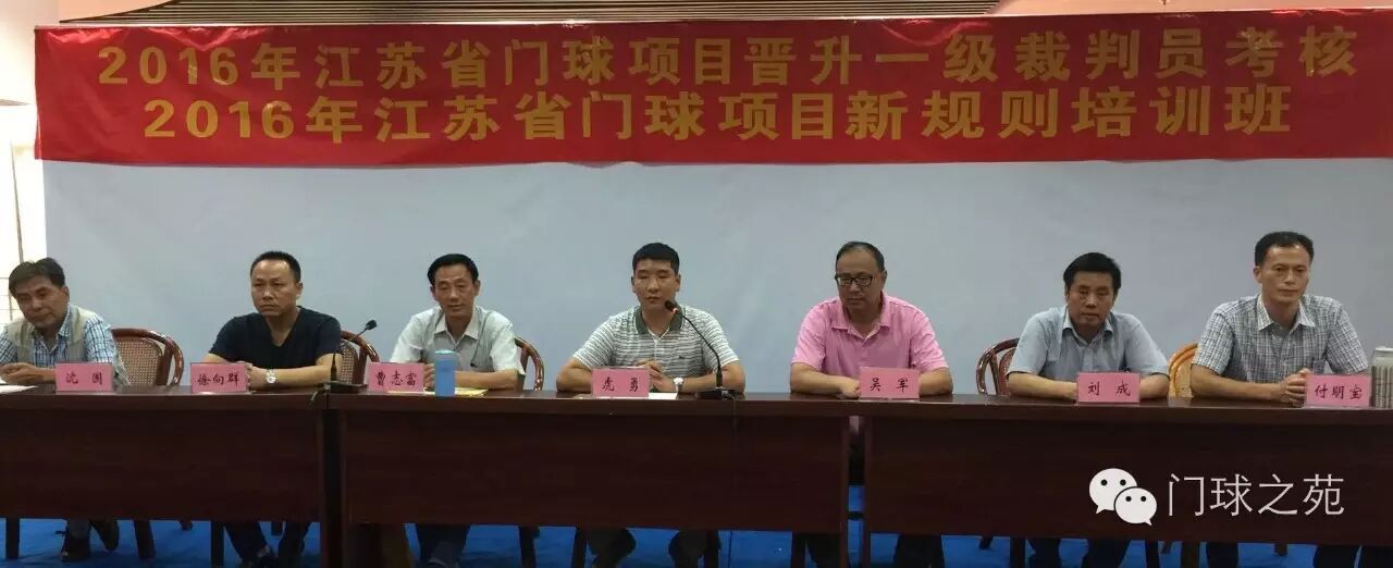 省门协每年还进行一次晋级培训考核,裁判员、教练员轮流进行,今年是裁判员晋级考核年。这次利用江苏省第七届全民健身运动会(公开站)暨2016年江苏省门球比赛,进行晋升国家一级门球裁判员考核。目前报名人数已达110多人,年轻学员占很大比列。8号上午陆续报到,下午举行开班仪式,江苏省门协秘书长虎勇讲话。副秘书长吴军、裁判委员会主任曹志富率领全体裁委会成员悉数到场。下午和晚上分别由国际级裁判徐向群、曹志富进行《2015规则》理论辅导和讲解。 开班仪式