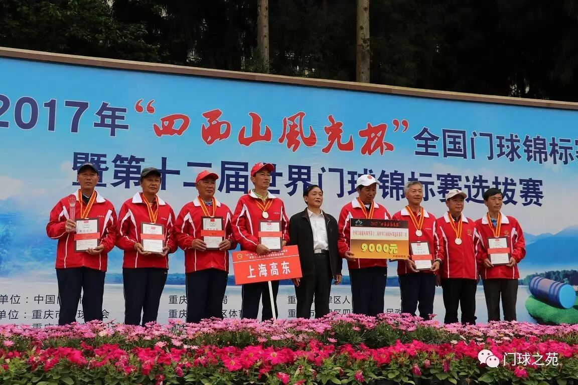 重庆市门球协会主席熊德元为亚军上海浦东新区高东镇门球队颁奖