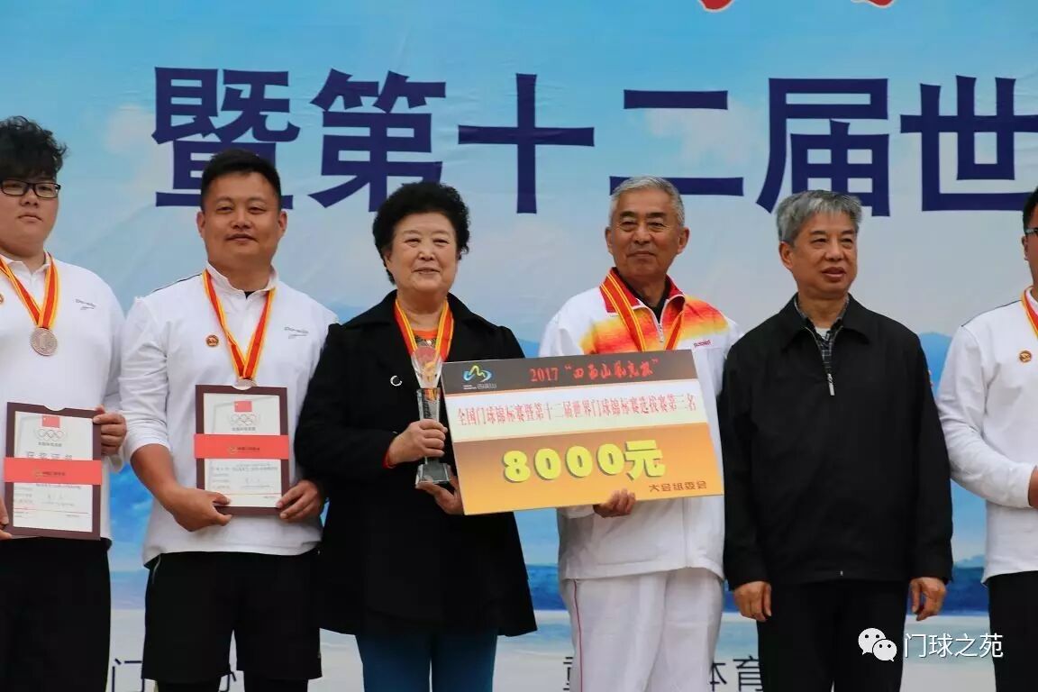 重庆市江津区四面山镇镇长蒋仕元为获得第四至八名的队伍颁奖 第四名四川宣汉县老年大学门球队 第五名湖北省门球协会队 第六名河南省新野县体育中心代表队 第七名江西宜春百神门球队 第八名陕西秦风队