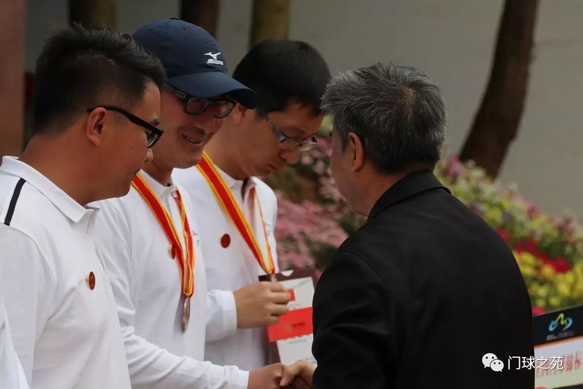 中国门球协会主席翁家忍为冠军胜利油田队颁奖