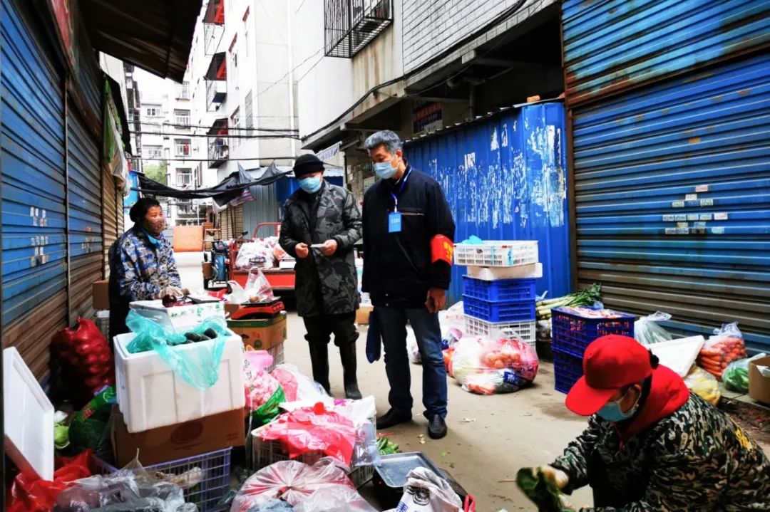 孝感市检察院干警深入包保的红光社区菜场检查,现场了解是否存在食品安全隐患、是否存在哄抬物价、牟取暴利、扰乱市场秩序等行为。