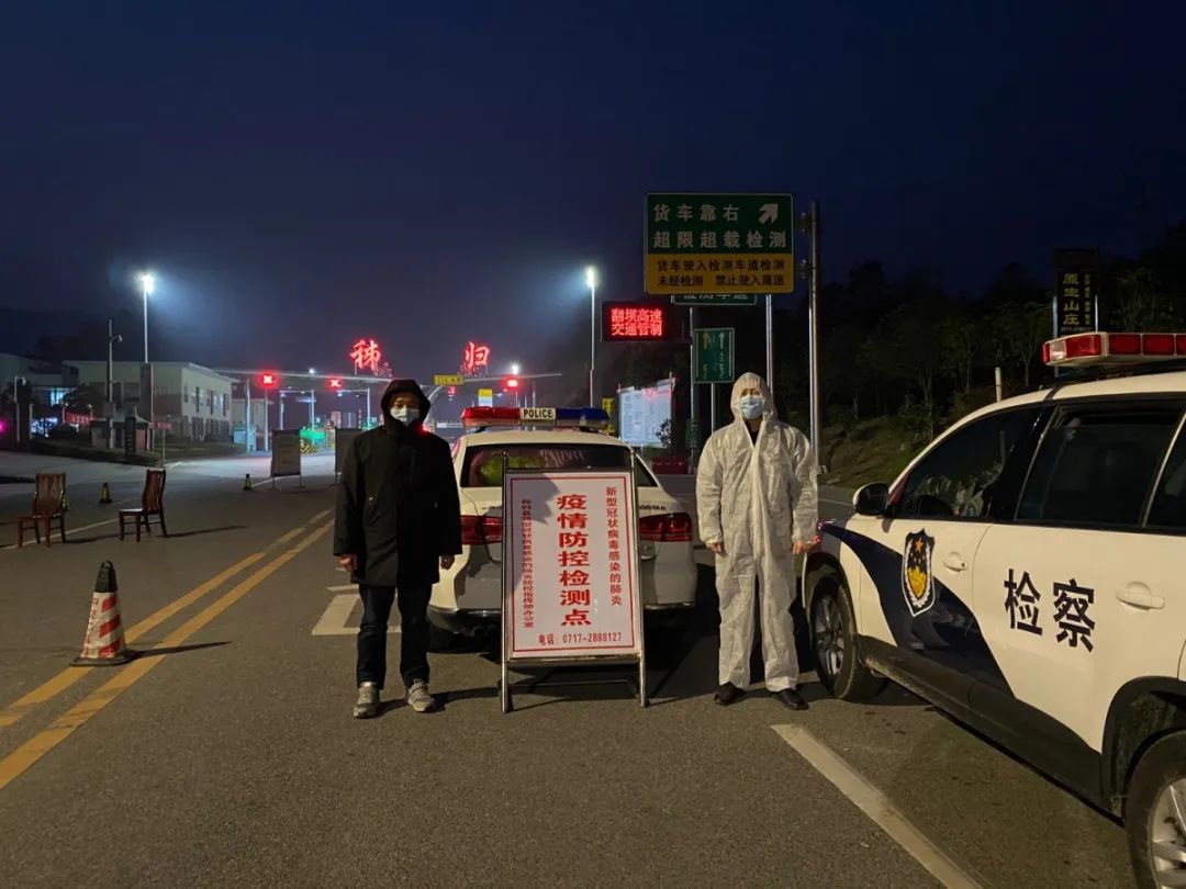 秭归县检察院干警在秭归高速入口参与疫情防控值守。