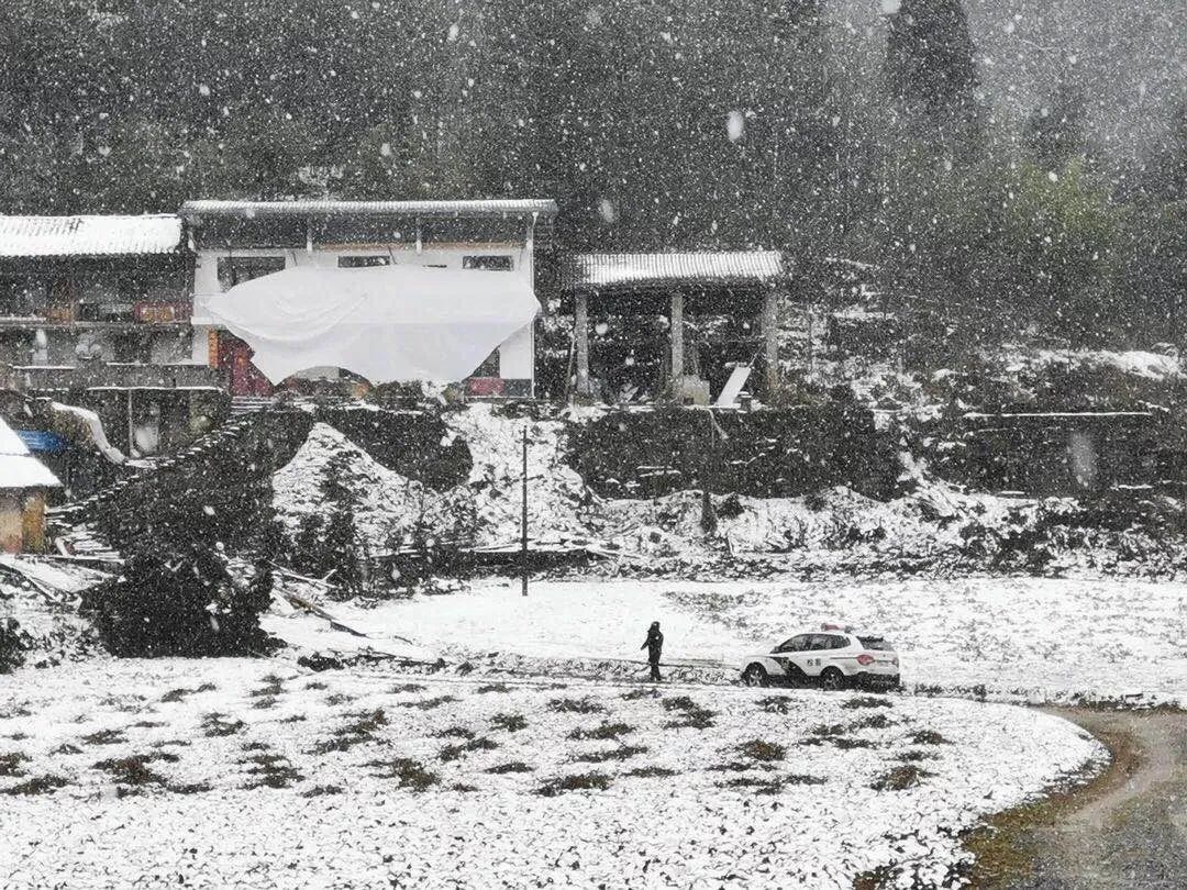 恩施州检察院干警冒着大雪,到定点扶贫村开展疫情防控排查。