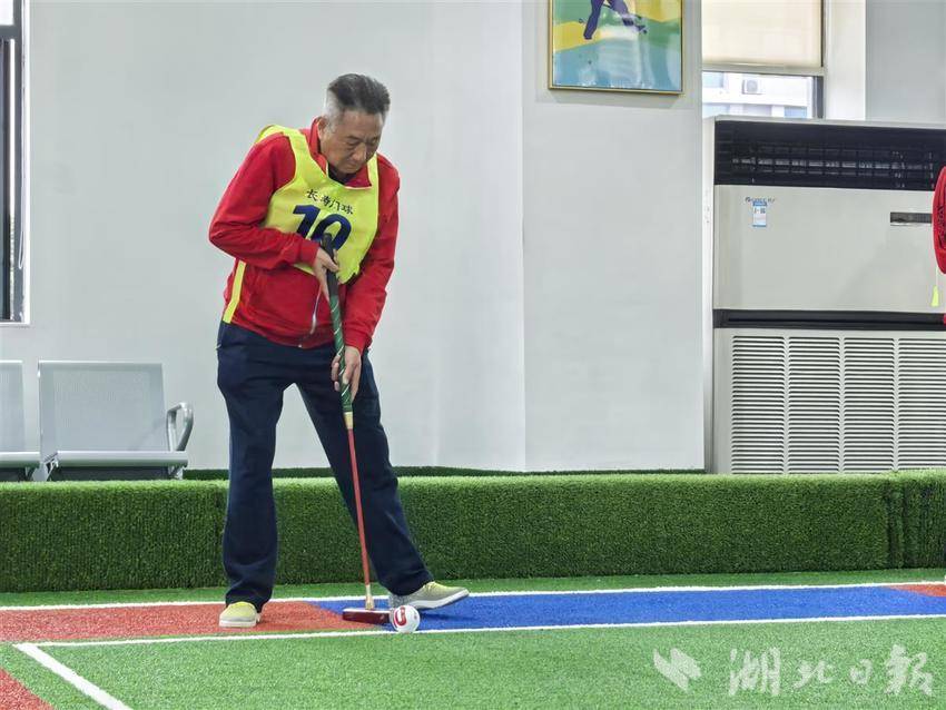 “好球!”赛场上,老同志们聚精会神,以杆击球。赛场边,等候比赛的队员们一边观战,一边点评选手的发挥。黄冈市老干部门球队队员王蔚说:“门球比赛是一项非常适合老年人健身的体育运动。我退休后一直从事这项运动,不仅丰富了我的退休生活,也为我带来了欢乐。这次湖北省委老干部局组织老干部门球赛,为我们搭建了一个与省内同行学习交流的机会,切磋了技艺、交流了感情。作为一名门球运动爱好者,我将积极为老年门球运动的普及发展作贡献。”