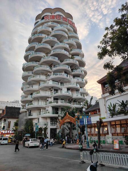 | 本帖最后由 张树弼 于 2026-2-1 16:14 编辑 黎明之城一一景洪 西双版纳傣族自治州,简称“西双版纳”,处于北回归线以南的热带北部边沿,高温多雨、干湿季分明而四季不明显。东北、西北与普洱市接壤,东南与老挝相连,西南与缅甸接壤。 景洪市,云南省西双版纳傣族自治州辖首府,景洪,傣语意为“黎明之城”,是以傣族为主体有13个多民族和睦相处的共同家园边疆地区。 澜沧江,西双版纳傣族自治州、景洪市的母亲河,发源于中国青海省唐古拉山,流经西藏、云南两省区,流出中国后被称为湄公河,一江连着中国、缅甸、老挝、泰国、柬埔寨、越南,东南亚最大的国际河流,六国的母亲河。 我们入住花月酒店在江北曼斗村,距澜沧江约200余m,漫步在江边条石铺砌的滨江路上,微风轻拂,高大棕榈树翠绿的叶子随风摇曳。路边具有东南亚特色的护栏,灰白两色的神蛇尾巴装饰。驻足静谧的澜沧江畔,两岸造型新颖各异的大楼䇯立,火红晚霞映照下宽阔的澜沧江水波光粼粼,缓缓流向远方。触景生情按动快门拍下澜沧江晚霞如诗如画的美景。 随夜幕降临,景观灯逐次点亮,霓虹闪烁,孔雀楼在灯光的映衬下,轮廓恰似一只欲振翅高飞的孔雀。斑斓灯光的交相辉映下,两岸建筑色彩如梦幻般流淌变化,时而清新淡雅,如春日初绽的花蕊;时而繁花似锦,如夏天盛开的百花;讲述大美中国的中国故事。 |