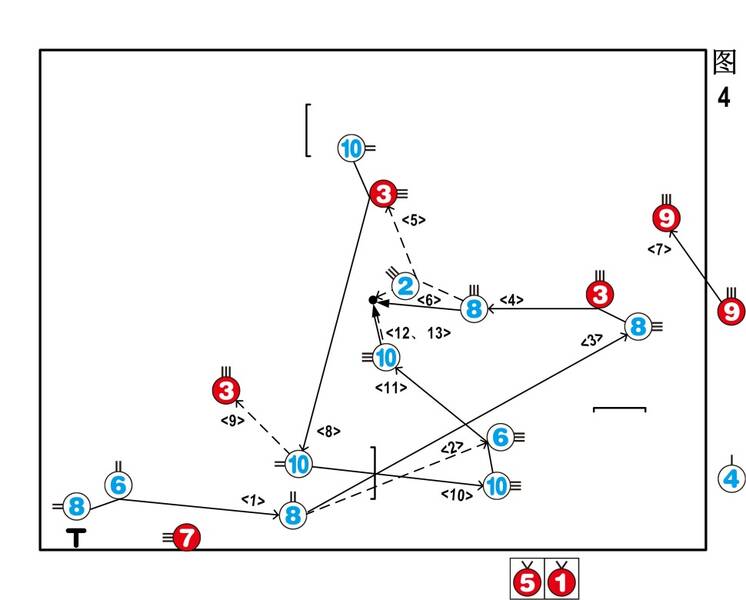 (3) 设计路径:整个战术链围绕“获取一个合适的对方球(③)”并“将其送到闪带位置”来展开。