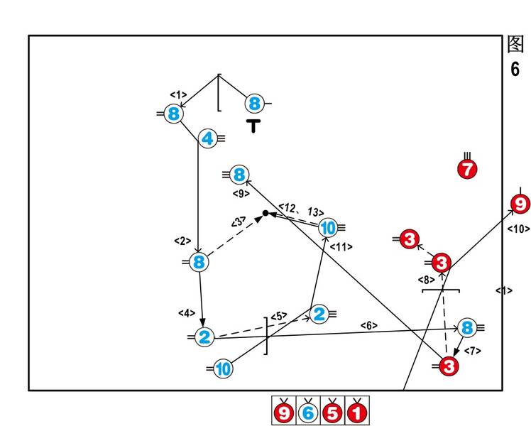 · 常规思路(对攻抢分): ⑧尽可能自身多得分(过门、撞柱),并闪送己方球得分,然后为⑩接应。弊端: 将胜负完全寄托于己方超高成功率以及与红方⑨的得分竞赛上,容错率极低,且未对红方最大的增长点进行任何干扰。