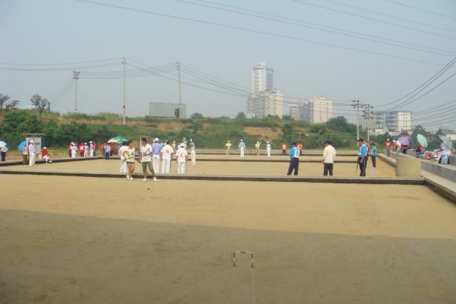 在此次九江参加“庐山杯”门球赛,给我最深的感受就是,九江门协在建造人造草坪门球场上,舍得本钱。2009年我曾来过此地参加全省中冠赛选拔赛,当时新建了六连片门球场:其中三连片风雨门球场,三连片露天沙地场。这次,故地重游,感觉旧貌换新颜,不仅原来的三连片沙地球场改造成了草坪球场,就连原来废弃不用、长满杂草三连片场地也即将改造成三连片草地门球场,且有两连片是带棚的场子,这样九连片门球场就有五个带棚的风雨门球场,给当地门球人营造了一个良好的娱乐环境。