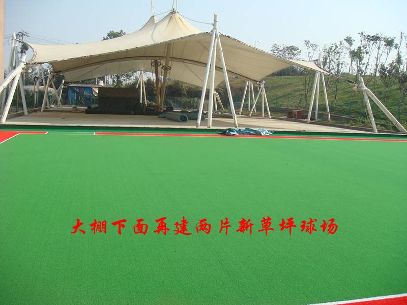 改造后的三连片草坪球场和正在改造的新三连片草坪球场