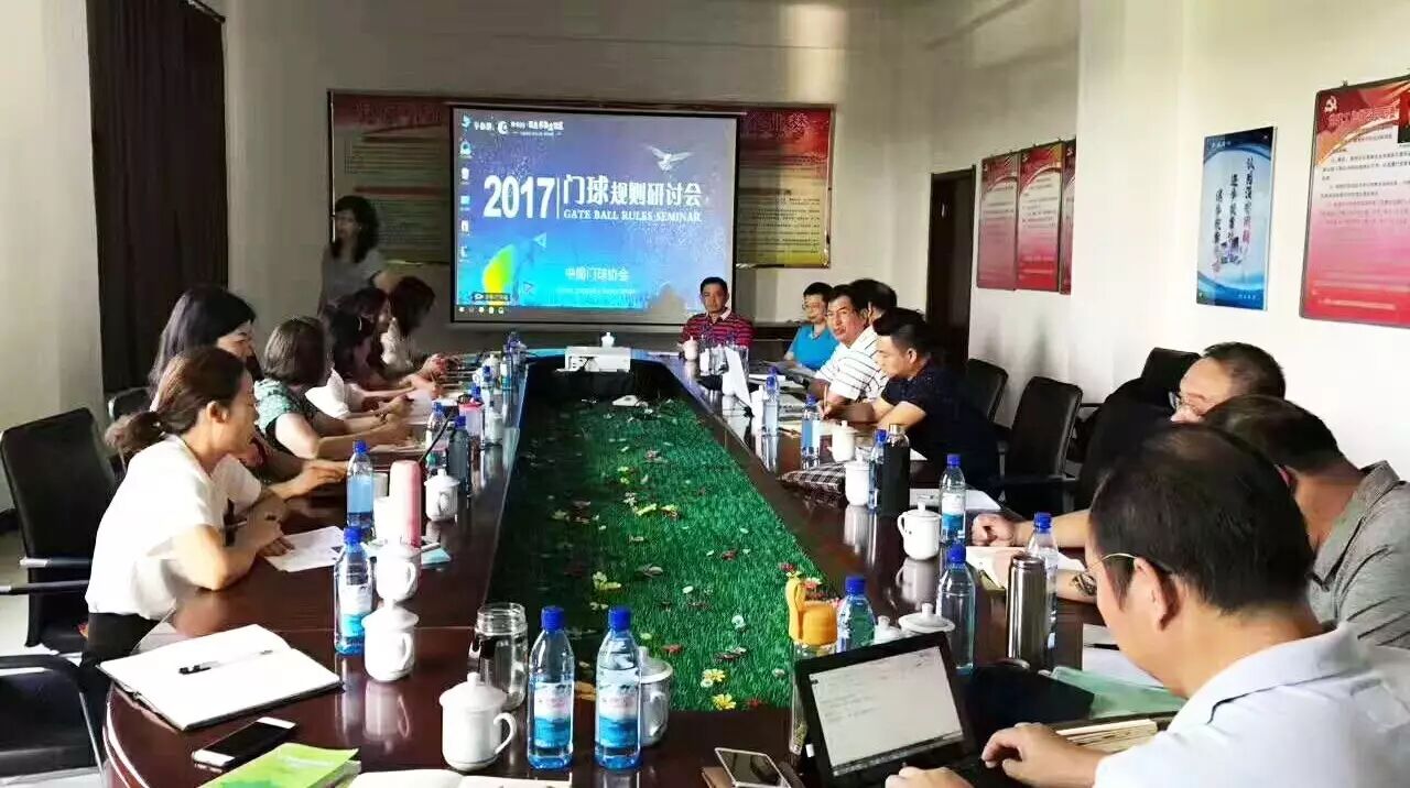 7月31日上午8点,由中国门球协会组织的《2017门球规则》研讨会在德丰利达集团旗下的山西门球训练基地大同阳光99温泉养生度假区会议室隆重召开。此次研讨会由中国门球协会秘书长张娜主持,中国门球项目全国顶级裁判及相关专家:中国门球协会仲裁委主任、上海市门球协会主席关键,中国门球协会仲裁委副主任周正,江苏省门球协会副主席吴军,中国门球协会仲裁委委员刘林箭,江西省门球协会裁判长朱筱华,山东省门球协会副主席刘群,河南省门球协会副主席李丹丹,重庆门球协会秘书长余晓琳,四川成都体育学院教授吴润平,陕西门球协会副主席姚兰和一直以来对门球事业大力支持的企业和合作伙伴德丰华奥文化体育发展(北京)有限公司总经理张珞珈,申体(上海)体育文化发展有限公司总经理、中国门球特邀副主席董玉平等出席了会议。