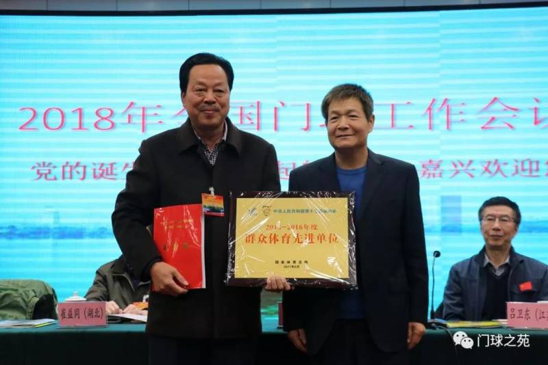 大会听取了《中国门球协会裁判员管理办法》《门球特色学校命名管理办法》《全国门球之乡命名管理办法》修订说明。 张娜宣读《体育总局关于表彰2013—2016年度全国群众体育先进单位和先进个人的决定》和中国门球协会推荐的先进单位名单、以及获奖的其他门球单位名单,中国门球协会主席翁家忍先生向获奖单位颁发全国群众体育先进单位牌匾。获奖单位分别是:1、重庆江津门协;2、江西婺源门协;3、山东省门协;4、深圳市门协;5、上海市门协。