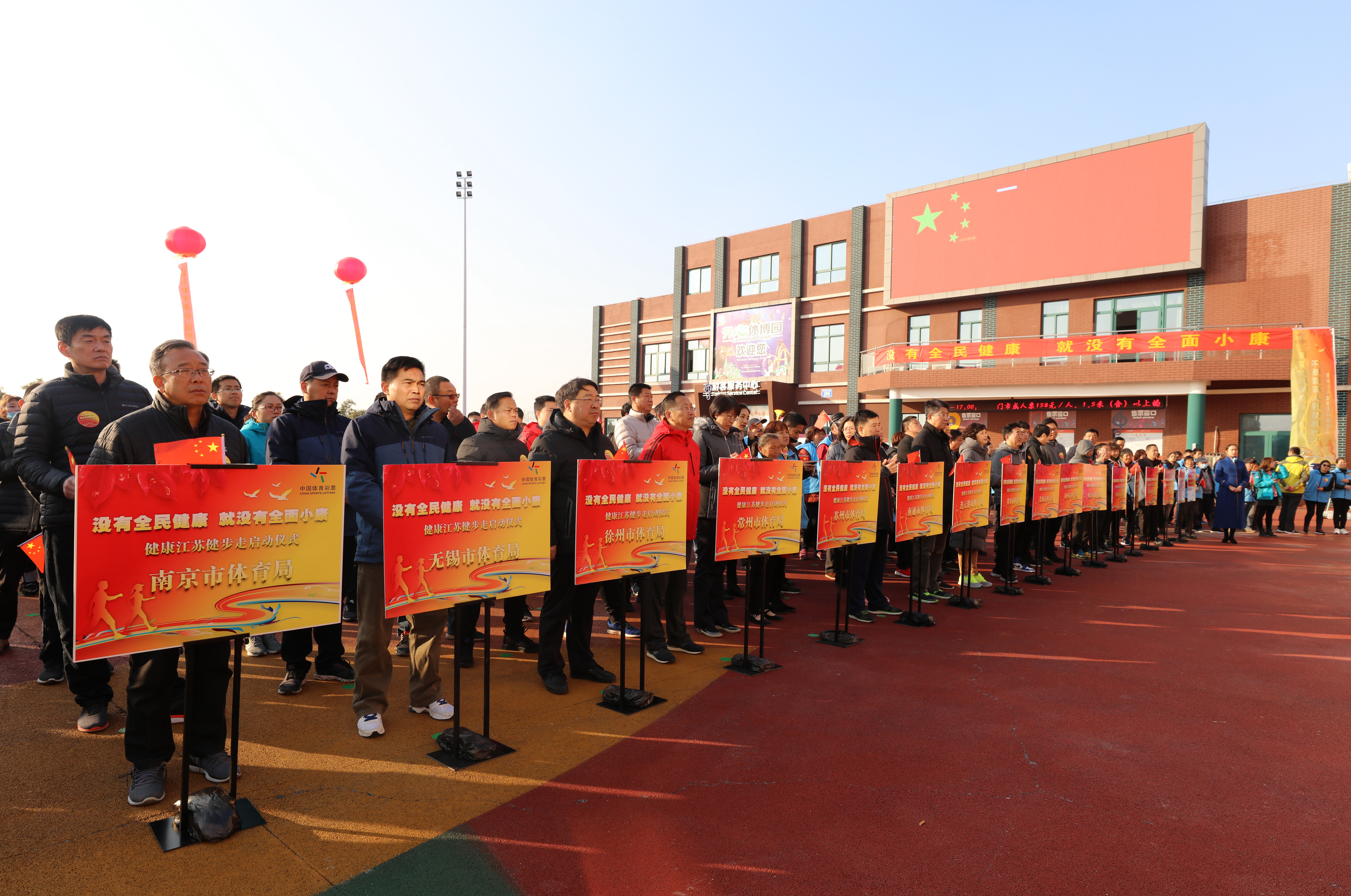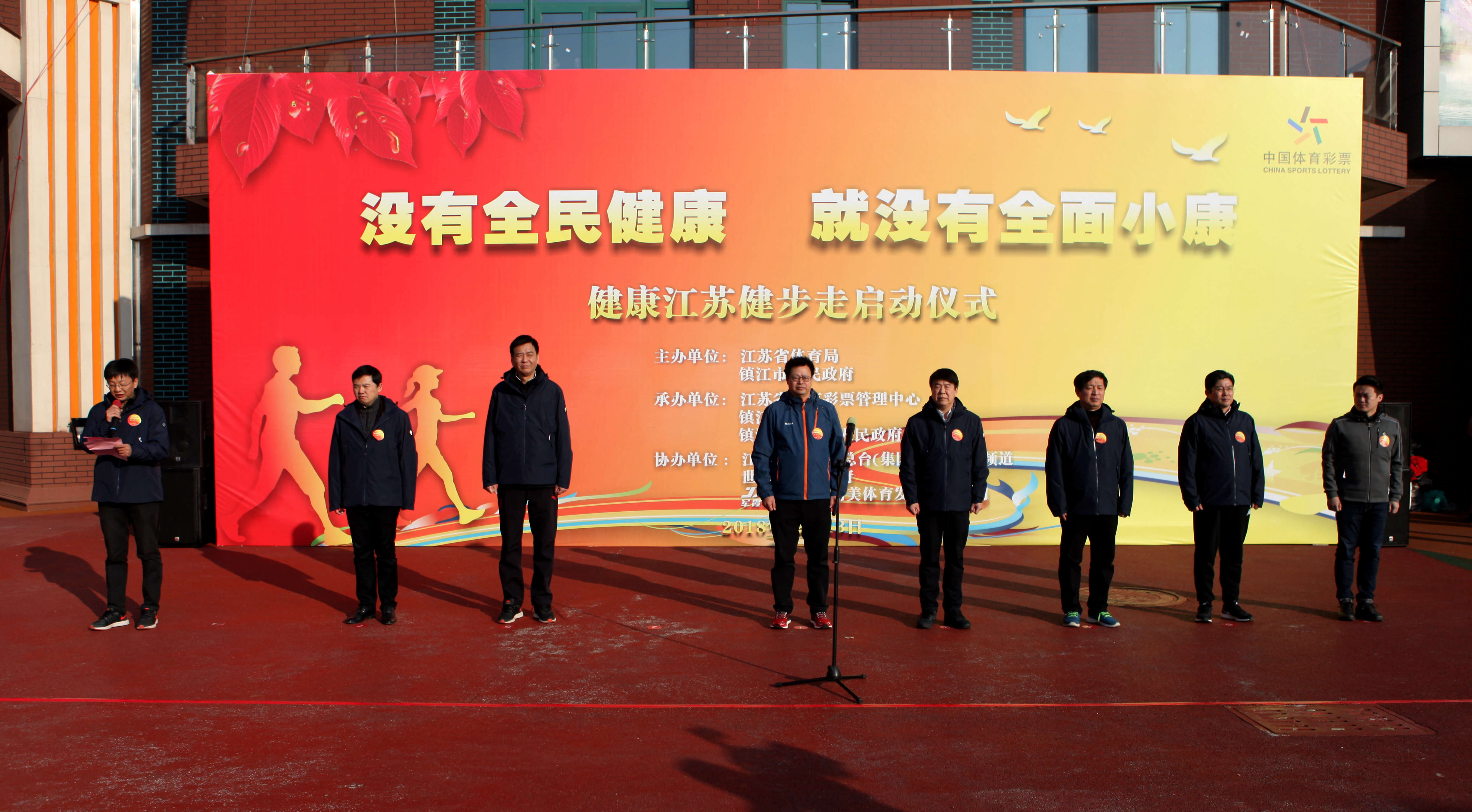 12月13日下午,江苏省体育局、镇江市人民政府在镇江市丹徒区世业镇举行健康江苏健步走启动仪式,增强“四个意识”,强化“两个维护”,深入贯彻习近平总书记系列重要论述,推动全民健身和全民健康深度融合,全方位、全周期保障人民身体健康。省体育局局长陈刚、副局长刘彤、王志光、王伟中、镇江市委常委、宣传部长孙晓南、丹徒区委书记张映桥、镇江市政府副秘书长杨毅出席启动仪式。