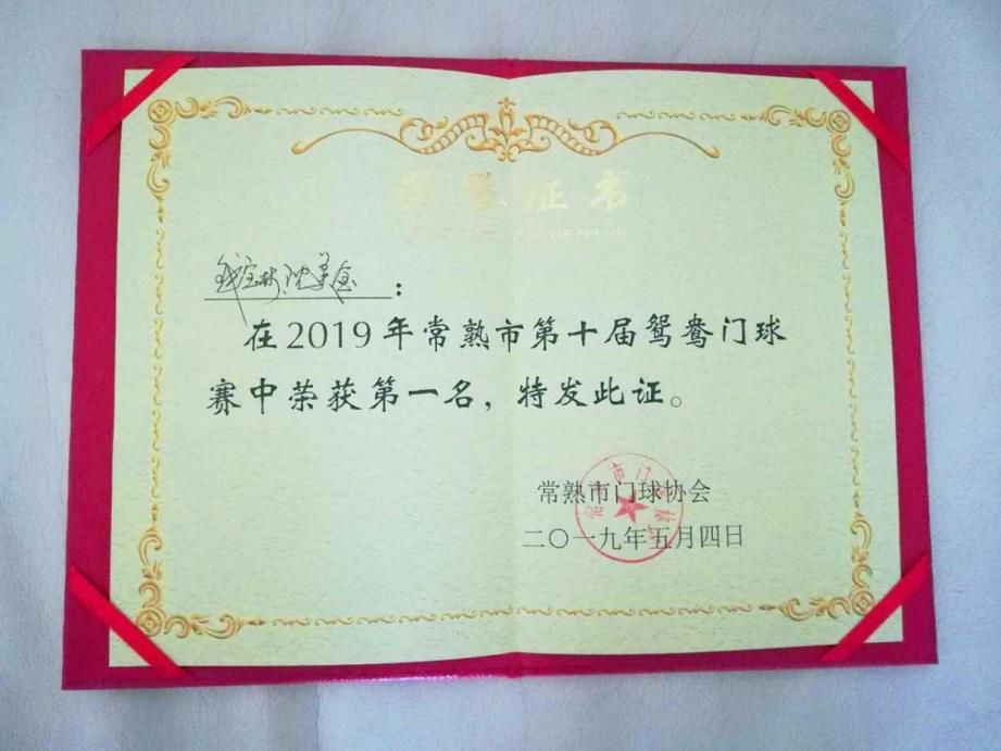 ❖4月15日,常熟市第四届“勤丰杯”村级门球赛第一名