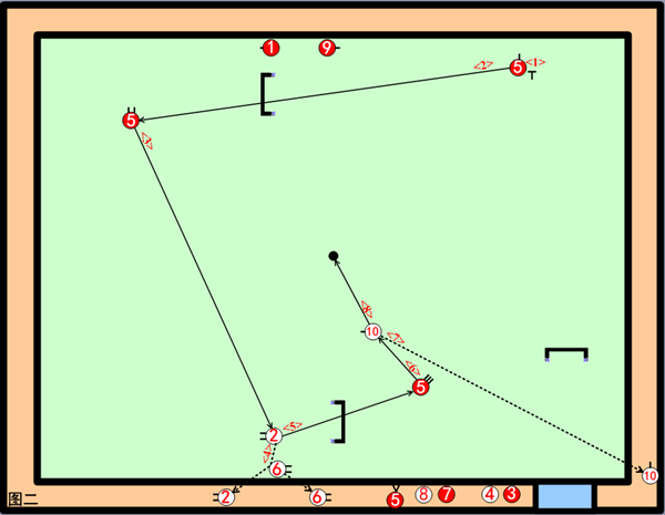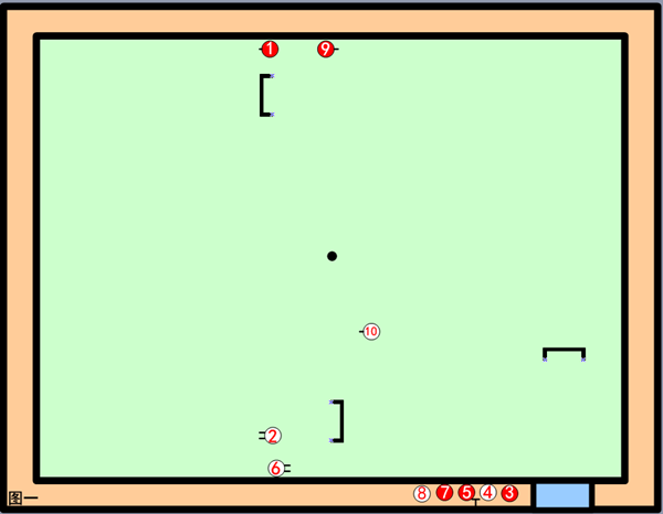 第二轮,1号撞击9号、闪送9号到二门一号位在二线边落位,自球仍打到二门0号位;2号进一门后、落位与10号制角很好,续击擦打10号、自球向二门前进了4米多,闪送10号到三门与中柱之间,自球进二门后、打到6号前;3、4两球放;