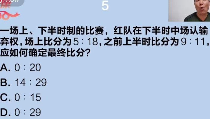 黄土地 发表于 2025-9-26 07:37 更正答题:应该选A. 根据规则“若有弃权行为时,按全场弃权处理,判对方球队20:0(如两队分差超过20分则 ...