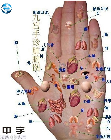 五指关节青筋暴,末梢循环定不好。 消化吸收看五指,指间有缝肠胃虚; 指甲竖棱肝病变,指根凸起大便差。 大鱼际,有深纹,心律不齐易心慌; 手腕延伸小鱼际,青筋明显会腰痛。 指甲颜色常泛白,记得补血补肾脏, 右手虎口手掌面,定位肝脏快又准。 视力不好有粗纹,有了细纹筋腱差, 手心颜色红青灰,胃部定是有疾患。 拇指指根纹理乱,胃部疾病早防范, 左手虎口手掌面,脾脏就是好判断。 早晚按揉健身体,口气清新免疫强, 女性乳腺看右手,手腕横纹摸两旁。 不平滑,有疙瘩,乳腺增生早预防, 食指指甲脑血管,凸棱明显是硬化。 女性痛经和血块,中指指根青筋暴, 生殖疾病最难查,男左女右记心上。